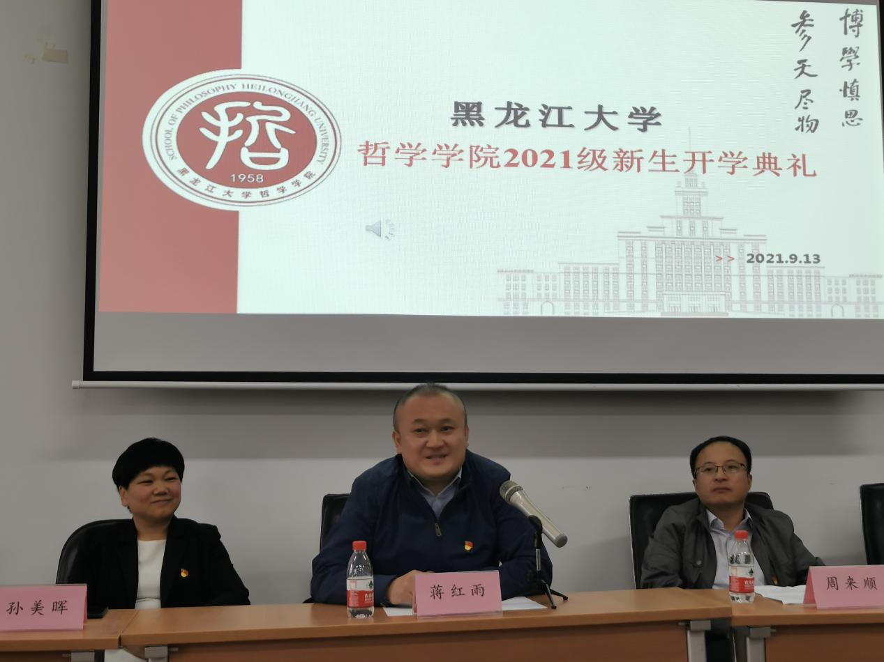 党总支副书记张丽丹老师首先向新生表达衷心的祝愿和热烈的欢迎,并期待新生们在哲学系开启崭新的人生阶段。随即介绍与会老师和2021级班主任任命情况,并宣布yl6809永利官网集团2021级新生开学典礼现在开始。