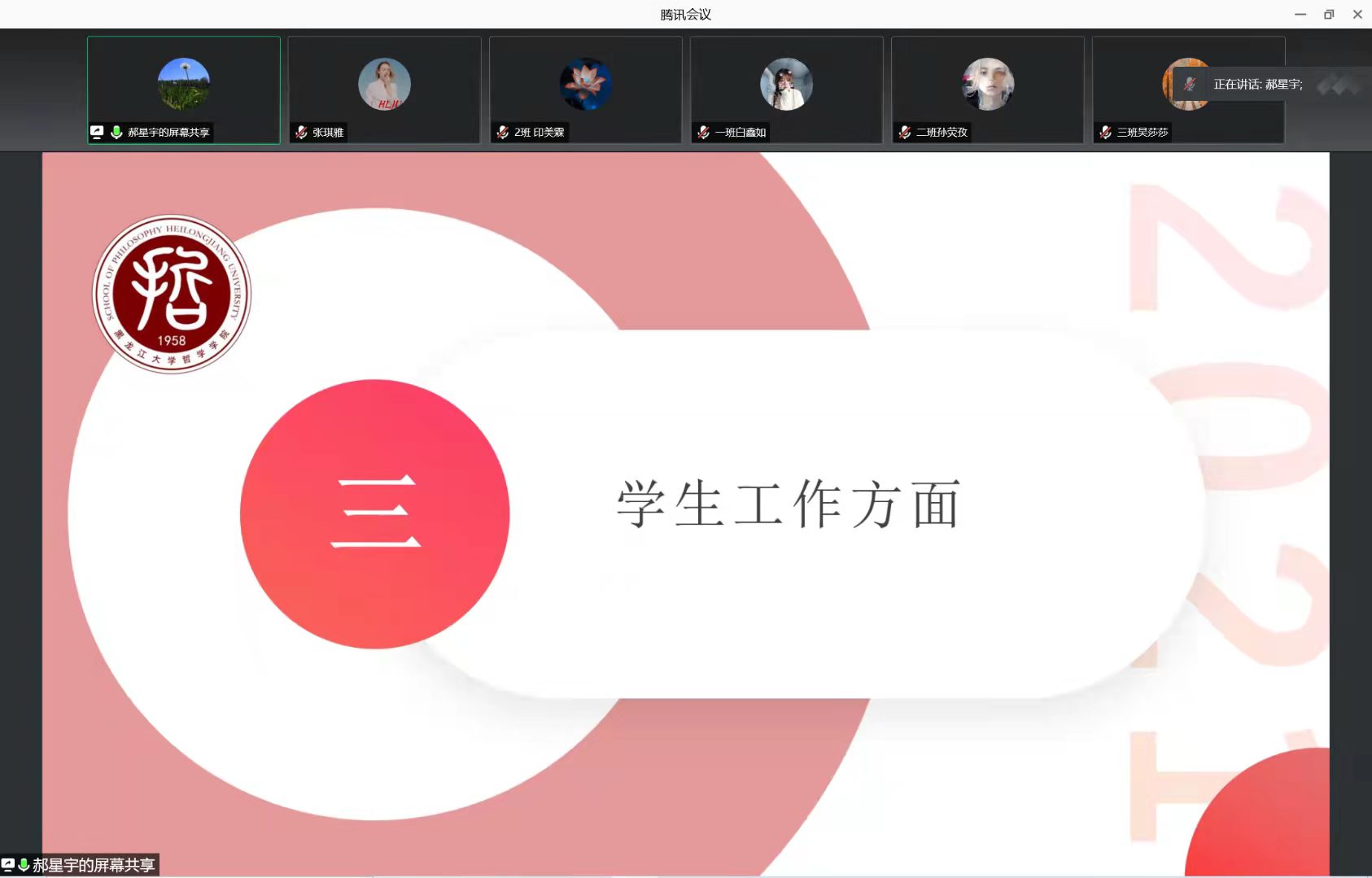 为增进yl6809永利官网集团2021级新生对专业学习以及大学未来四年学习生涯的理解,2021年10月8日,学院邀请优秀在校学生为大家开展“大学四年学习经验 、学生工作经验分享与交流”线上会议,新生辅导员焦瑞老师主持会议,全体新生参加。