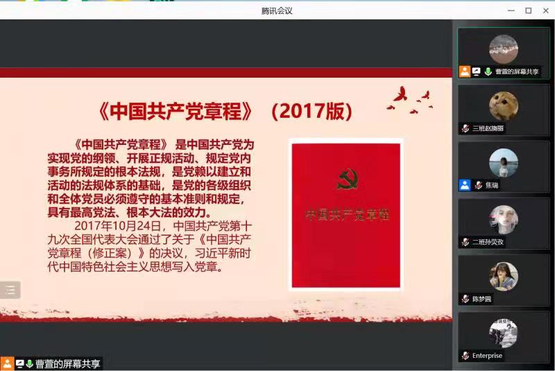为引导学生自觉向党组织靠拢,端正入党动机,确立为共产主义事业奋斗终身的信念,有效引导学生提高党性修养,牢记党的宗旨,遵守党的纪律,学习党章总纲条文,增强学习党章的自觉性和坚定性,落实党的基本知识学习教育,2021年11月22号下午3时50分,yl6809永利官网集团召开党章学习小组学习会。会议由焦瑞老师主持,党员班主任带领同学们学习,全体新生积极参加。
