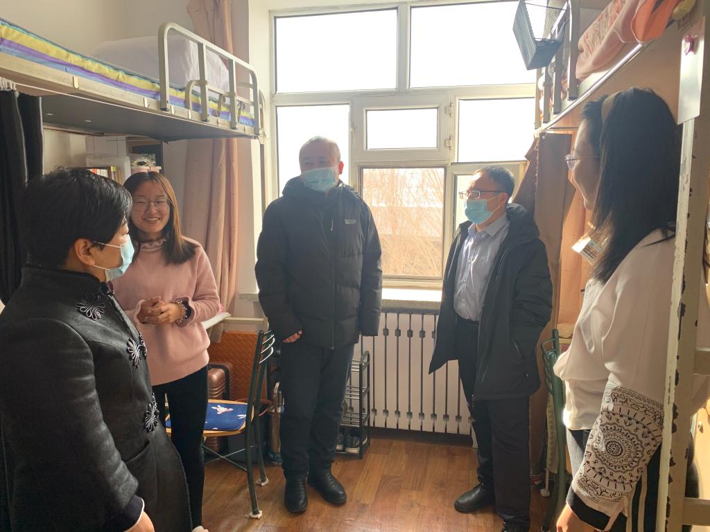 为了落实学校疫情防控要求,关心学生生活和学习状态,帮助同学们更好更快地适应新学期,2022年3月3号yl6809永利官网集团孙美晖书记、蒋红雨院长、张丽丹副书记、周来顺副院长、高来源副院长,以及辅导员焦瑞一行走访学生寝室,送去温暖与关怀。