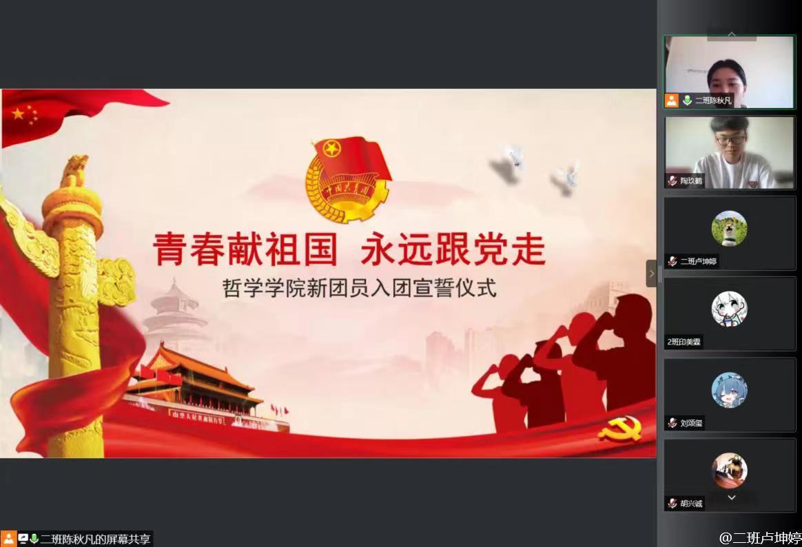 为加强哲学学院共青团队伍建设,切实将先进青年吸收进团组织,保持团员队伍朝气蓬勃的青年特点,充分发挥共青团员先锋模范作用,以优异成绩喜迎党的二十大胜利召开,yl6809永利官网集团于2022年6月9日下午线上召开新团员入团仪式。本次仪式由21级哲学二班团支书陈秋凡主持,yl6809永利官网集团团委副书记焦瑞老师出席仪式,新团员及21级哲学二班全体同学参加仪式。