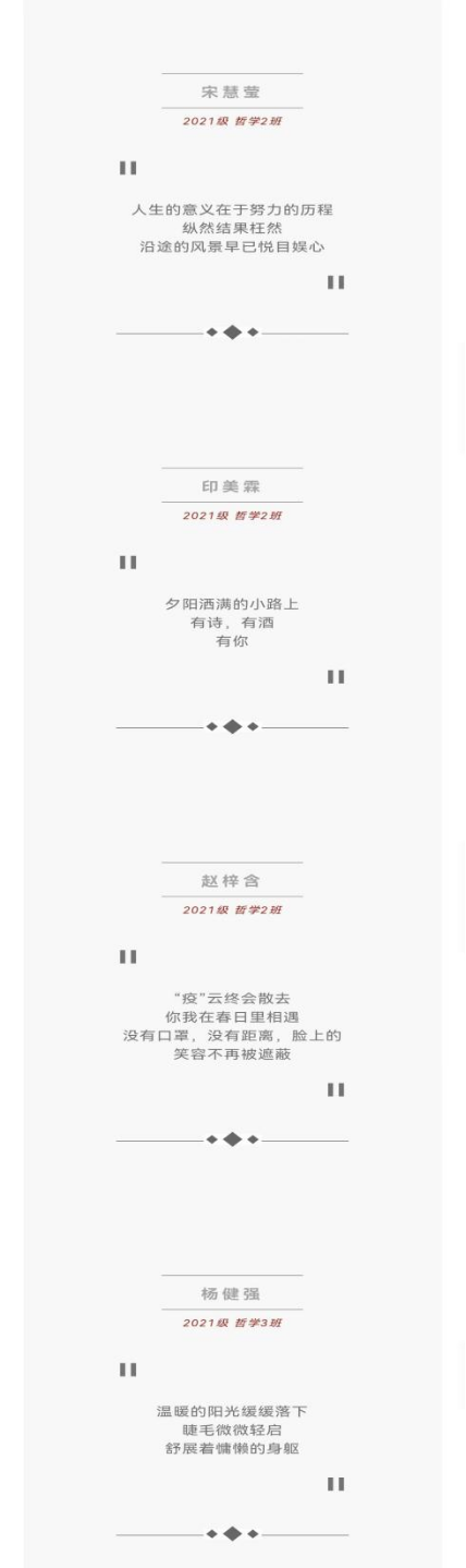 落笔成三行,以诗话情长。为加强疫情防控期间大学生的心理健康教育工作,有效执行学生工作部心理健康教育中心关于大学生心理健康教育宣传月活动的相关要求,营造良好的心理健康氛围,提高学生心理健康素质。yl6809永利官网集团二级心理辅导站于3.25—5.25活动月期间开展心理三行诗作品征集活动,同学们提交的优秀作品被展示在微信公众号上。