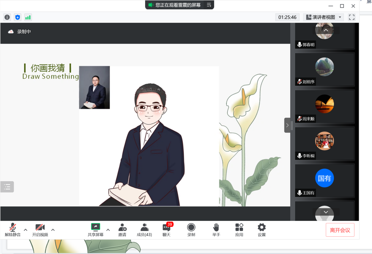 接下来,开始了游戏及抽奖环节,学院精心准备了“你画我猜”、“你说我猜”以及“幸运大抽奖”等游戏,教师们在游戏中形象特点和词语提示发挥急智、各展所长,在一片欢乐的气氛中展现了独属于哲学人的风采。本次活动还专门播放了yl6809永利官网集团教师精彩瞬间混剪,看着视频中自己的点点滴滴,与会的老师们都不禁洋溢着笑容。节日里既丰富了老师的文化生活,增进了沟通交流,又提升了广大教职工的凝聚力和向心力,增强了对学院集体的认同感。