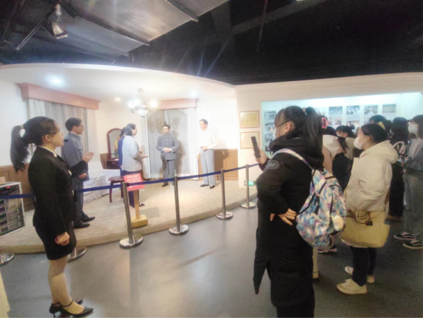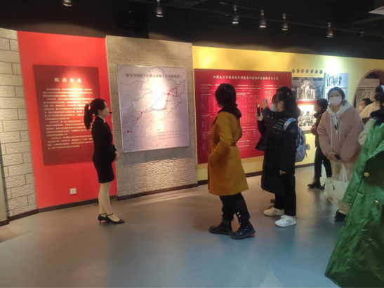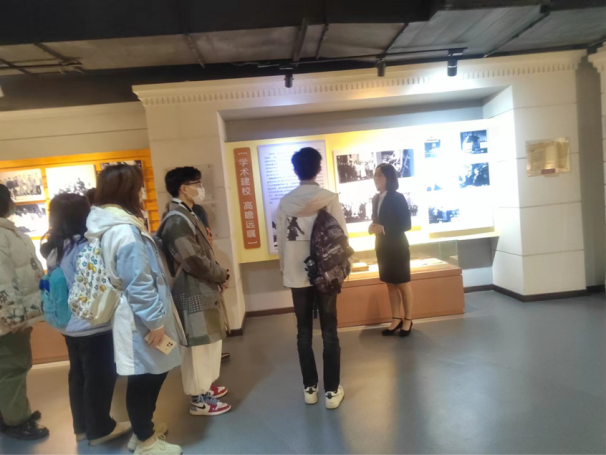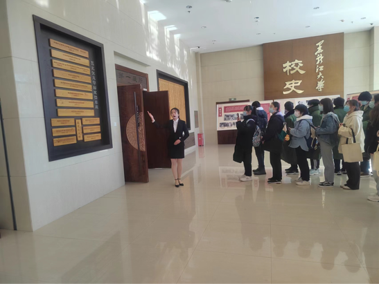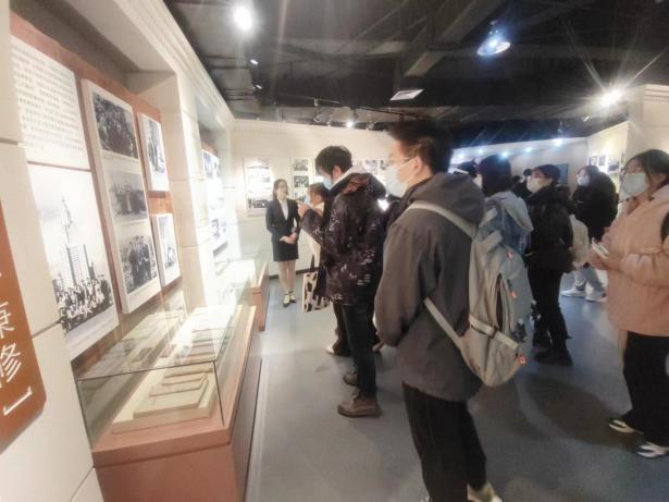 第二展览馆,讲解员从人才培养稳步提升、服务社会成效显著、学科建设再创佳绩、师资队伍持续优化、国际办学有效推进、党建思政同向发力、文化建设异彩纷呈、民生保障扎实开展、校友工作开拓新局等十部分,和同学们一起回顾了建校以来yl6809永利集团所取得的辉煌成就,希望同学们积极向先辈们学习。