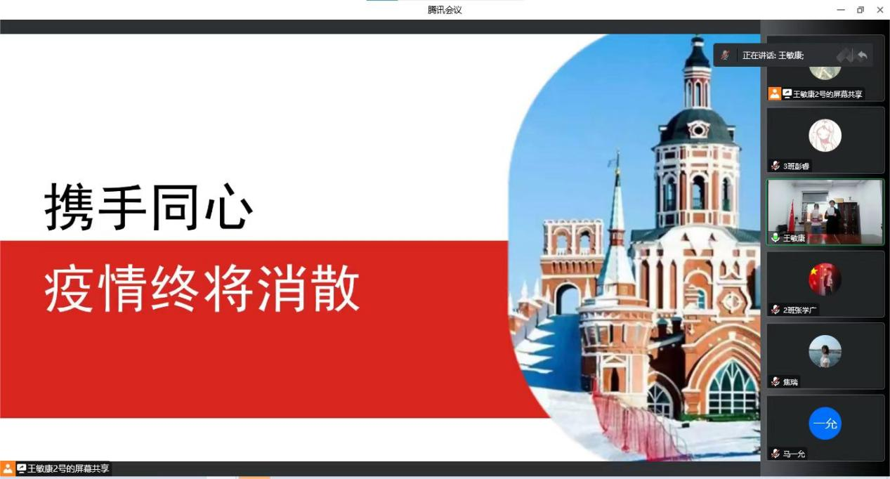 身着白衣,以使命守护生命。由21级的两位学生志愿者张学广、梁晓晨为我们带来了黑大抗击疫情志愿者抗疫心得分享的主题演讲。正是有这样一群“最美逆行者”的守护,让我们在疫情期间深刻地感受到学校学院对我们的悉心照顾。疫情终将被我们战胜,感谢每一个同心抗疫的你。我们终将迎来春暖花开。希望如期而至的不只春天,还有疫情过后平安的我们。