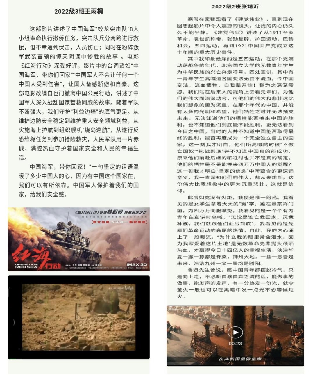 yl6809永利官网集团在寒假期间开展了“打卡一份观影微感悟”活动,活动期间同学们踊跃投稿,用文字、视频等形式分享自己的观影体验和心得,引导yl6809永利官网集团学生继续积极学习党的宝贵经验、传承百年红色底蕴。