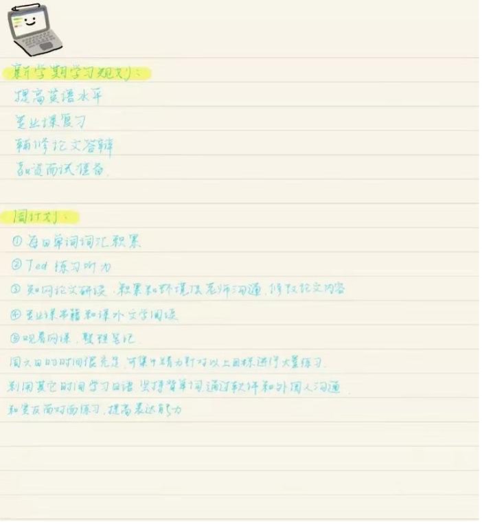 通过一份精细的学习规划可以让同学在学习中动力满满,按部就班完成每一个小目标。百围之木,始于勾荫;万里之途,起于跬步。从小事做起,从点滴积累,相信收获就在不远的明天!
