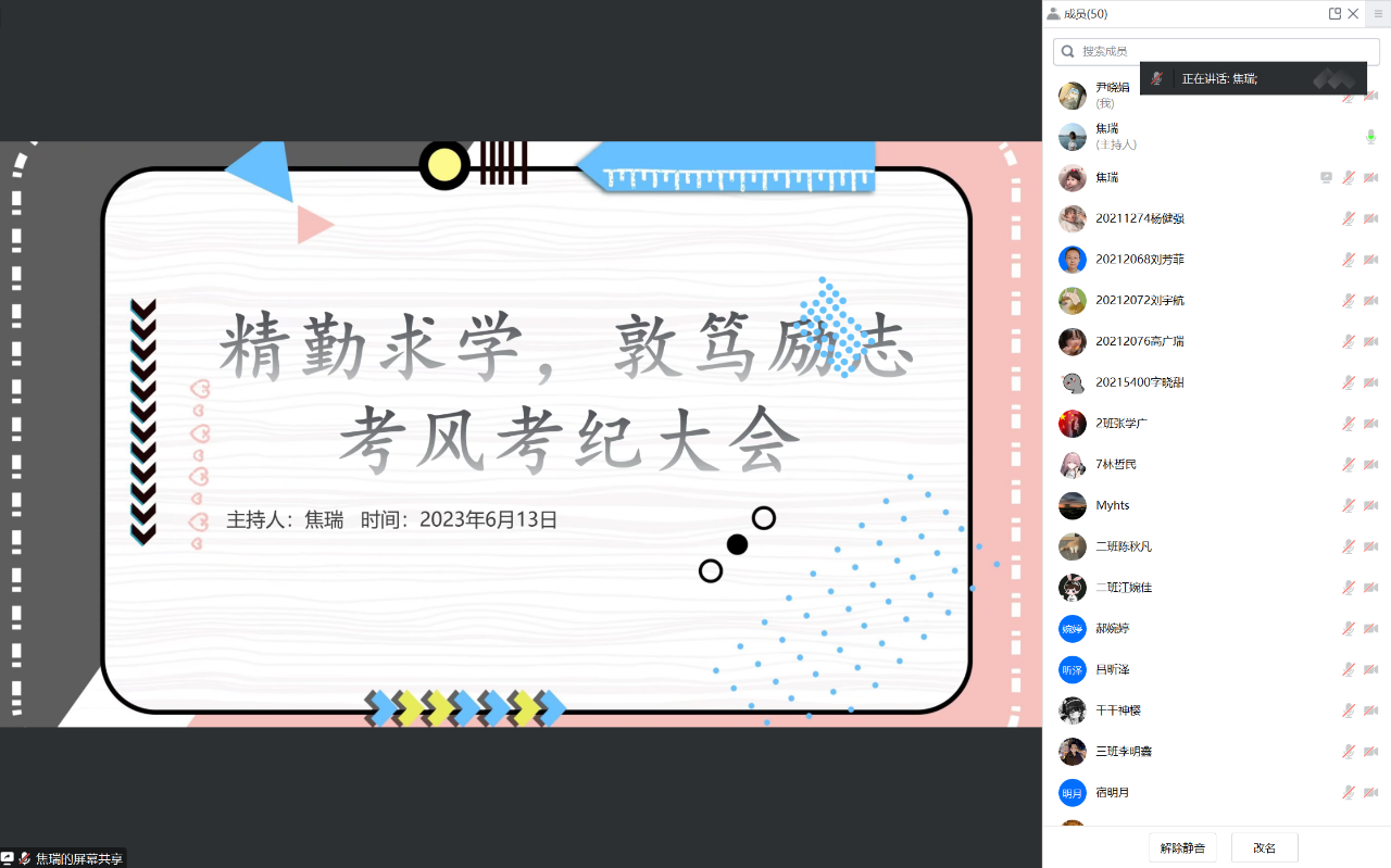 强化诚信意识,严肃考风考纪。为加强学风建设,营造良好的学习氛围,公平工作的考试环境,6月13日—14日,yl6809永利官网集团分年级、分层次召开了以“精勤求学,敦笃励志”为主题的考风考纪暨学生诚信教育大会,会议以线上线下相结合的方式召开,学院辅导员张博伦、焦瑞老师主持会议,各年级学生参加大会。