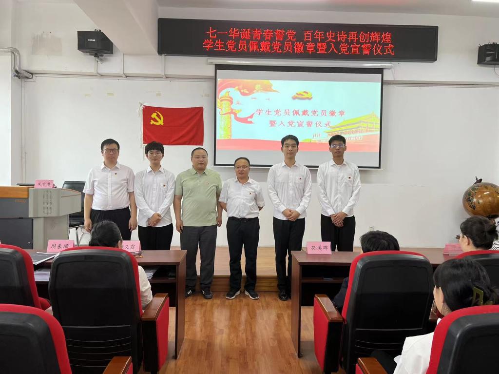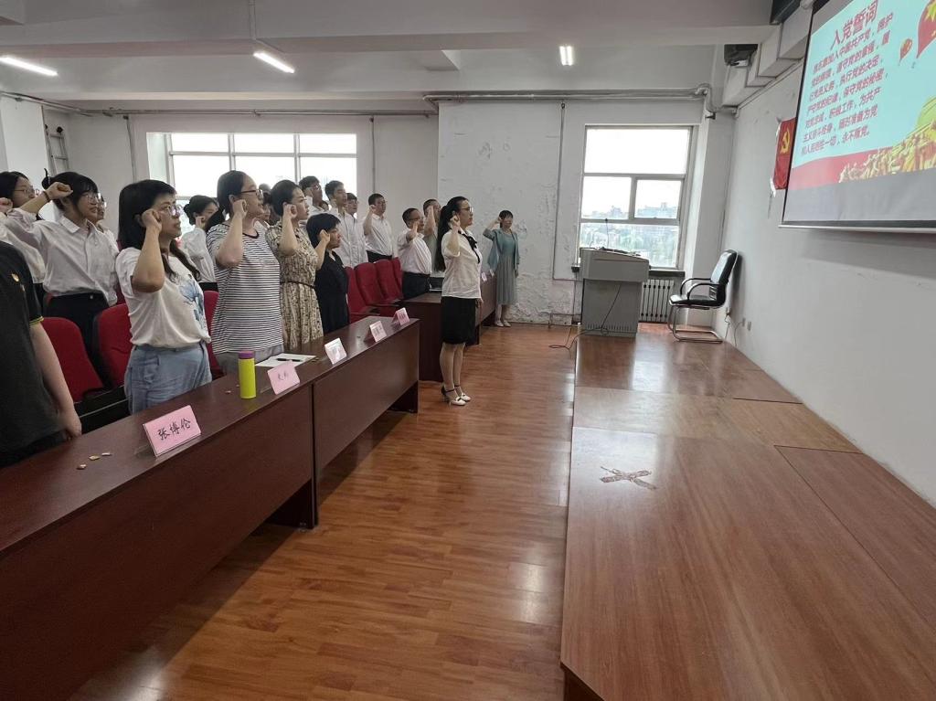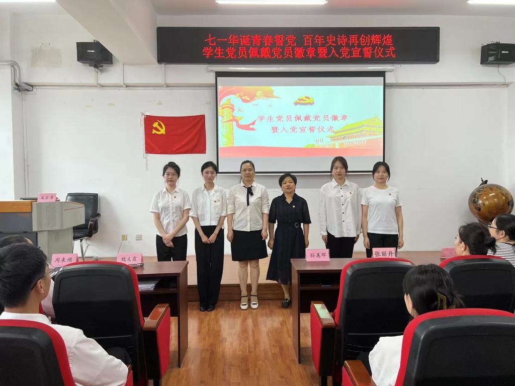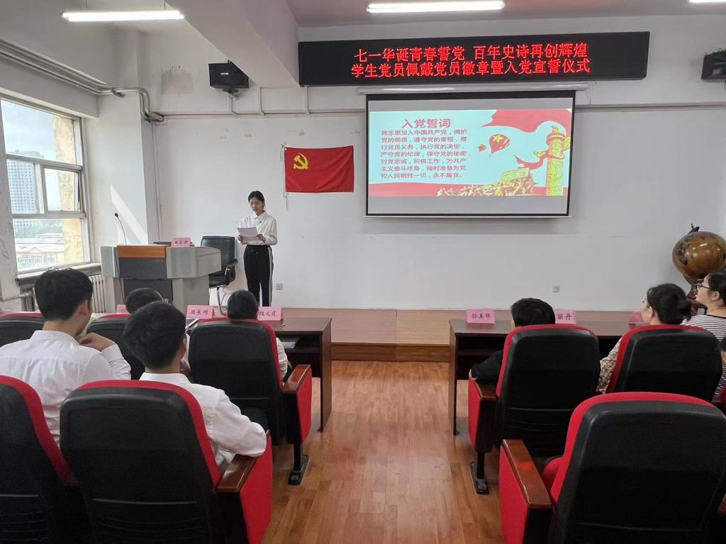 为庆祝中国共产党成立102周年,迎接"七一"建党节,深入推进学习贯彻习近平新时代中国特色社会主义思想主题教育,切实加强党性教育、坚定学生党员的理想信念、增强学生党员的组织归属感和身份认同感,yl6809永利官网集团于2023年6月28日下午在汇文楼937教室开展“七一华诞青春誓党,百年史诗再创辉煌”学生党员佩戴党员徽章暨入党宣誓仪式。出席本次入党宣誓仪式的有yl6809永利官网集团党总支书记孙美晖、yl6809永利官网集团教授及博士生导师魏义霞老师、yl6809永利官网集团党总支副书记张丽丹、yl6809永利官网集团副院长周来顺,yl6809永利官网集团教师党员代表林菲、史书、于跃、张灵馨,yl6809永利官网集团辅导员张博伦,yl6809永利官网集团全体学生预备党员参加活动,仪式由yl6809永利官网集团辅导员焦瑞主持。