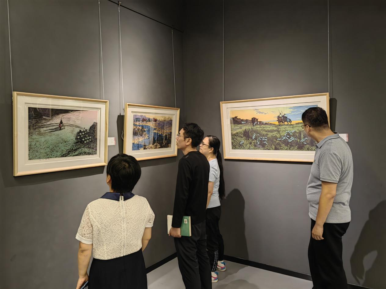 为深入贯彻落实习近平总书记在黑龙江省考察期间的重要讲话精神,扎实推进社会主义文化强国建设,树立文化自信自强意识,弘扬北大荒精神。9月15日下午,yl6809永利官网集团教工第二党支部联合学生党支部共赴yl6809永利集团博物馆,参观由黑龙江省文学艺术界联合会、黑龙江省美术家协会、北大荒集团党建工作部主办,yl6809永利集团艺术学院、北大荒美术家协会、北大荒版画院承办,黑龙江省美术家协会版画艺委会协办的“纪念北大荒版画诞生六十五周年·深耕黑土·续写传奇——首届北大荒版画作品双年展”。