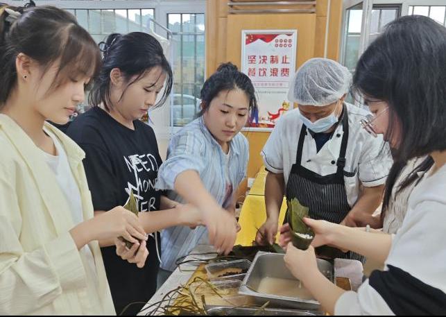 同学们和食堂工作者一起其乐融融地制作传统美食,不仅得到了美味,更收获了浓厚的师生情谊。随着最后一批饺子热腾腾地出锅,我们的端午节活动也正式画上了圆满的句号。在这场欢乐的盛宴中,我们一同度过了许多难忘的时光,留下了许多有趣的瞬间。