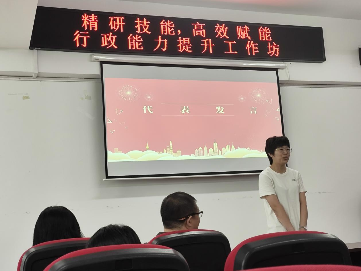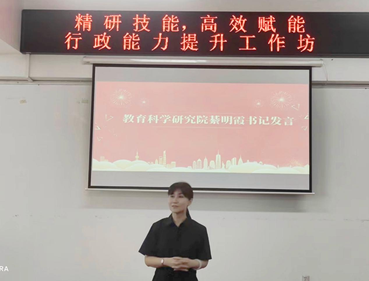 教育科学研究院党总支书记綦明霞为工作坊闭幕式致辞,表示此次联合工作坊内容丰富,通过名师引领和交流研讨,让行政人员突破传统思维的束缚,探索出更具效率的工作流程,相信将有力推动日后工作的高质量发展。(yl6809永利官网集团、政府管理学院、新闻传播学院、教育科学研究院供稿)