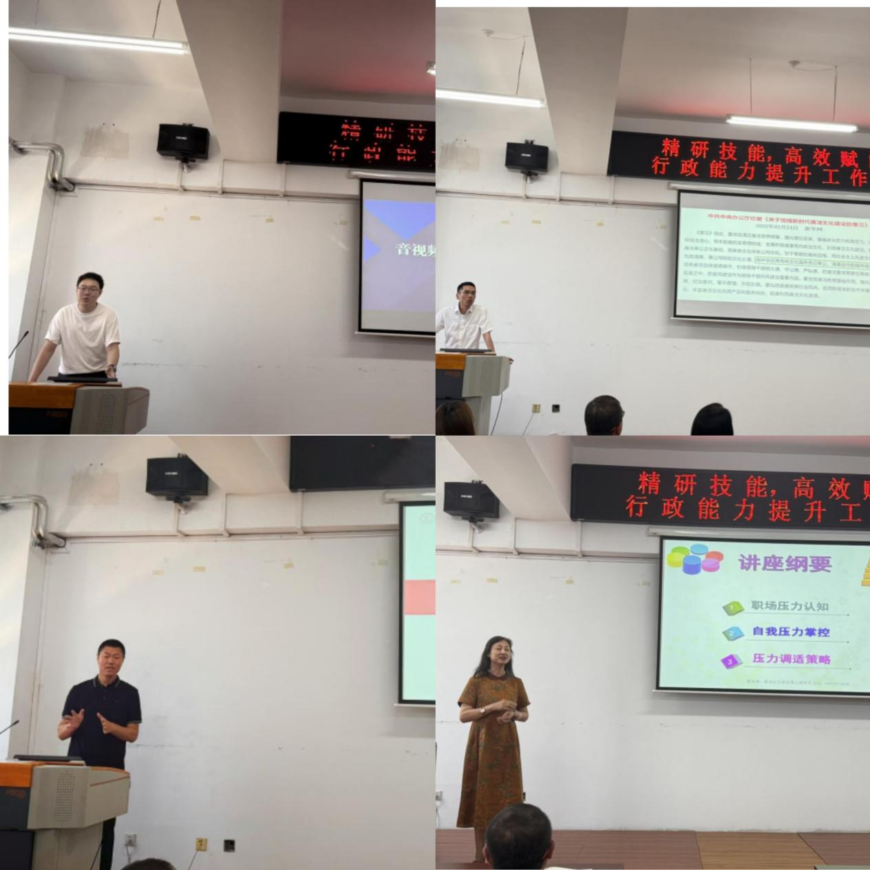 名师引领。新闻传播学院吴韩老师讲解了如何制作高水平的音视频,用大量生动的图片逐一讲解,让大家收获满满的实用技巧;yl6809永利官网集团雷震老师讲述了中国传统的廉文化,期望共同做到“执纪者必先守纪,律人者必先律己”;政府管理学院付传老师讲解了怎样写好工作总结,对工作总结的每一部分的详细剖析,大家写作的质量和水平得到了切实的提高;教学科学研究院谢念湘老师现场对大家进行心理压力值测试,并分享了职场压力掌控与调适策略,会后大家纷纷表示对自身的压力状况有了更清晰的认知。