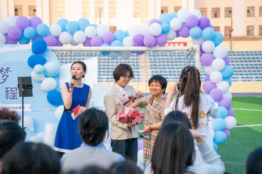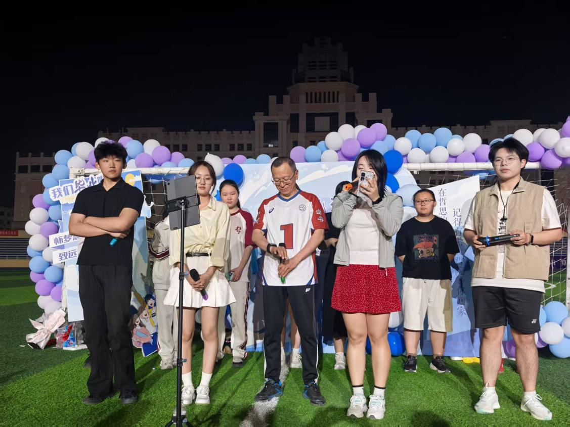 暮色渐浓,操场上的氛围却愈发炽热。歌会在饱含深情的朗诵中拉开帷幕,朗读者们以铿锵有力的话语,诉说着青春的激昂与不舍,字字句句都饱含着对校园生活的眷恋,对未来征程的期许。随后,活力四射的舞蹈登场,舞步灵动,热情奔放。各类歌曲表演更是将歌会氛围推向高潮,抒情的慢歌,同学们用细腻的嗓音娓娓道来,诉说着青春里的懵懂与成长;动感的快歌,瞬间点燃全场热情,让观众们忍不住跟着节奏摇摆;学院二级心理辅导站带来温暖而充满力量的合唱,唱出了毕业生们对未来的憧憬与向往。孙庆斌老师携手学院女子排球队走上舞台,共同唱响昂扬的旋律。赛场上队员们奋力拼搏的坚韧,训练中孙老师日复一日的悉心指导,都化作歌声中无畏前行的勇气,令人心潮澎湃。
