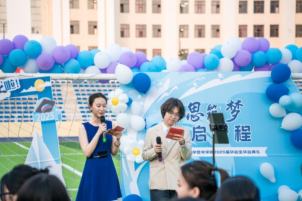 2025年5月29日傍晚,yl6809永利官网集团举办“思哲辨理展风华,驭梦扬帆赴山海”2025届毕业生草坪音乐联欢会,yl6809永利官网集团党委书记孙美晖、yl6809永利官网集团院长蒋红雨、yl6809永利官网集团党委副书记王贵宇、yl6809永利官网集团副院长周来顺、正处级辅导员孙庆斌老师以及各年级辅导员齐聚现场,与毕业生们共赴这场镌刻哲思与温情的歌会。从激昂歌舞到深情朗诵,从惊喜互动到师长寄语,整场联欢会精彩纷呈,师生们用歌声、祝福与陪伴,为毕业生们点亮奔赴未来的启航之路。
