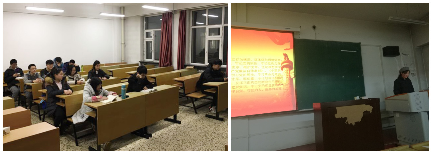 为了提高学生党员理论政策水平,贯彻落实“两学一做”学习教育工作要求,2016年11月16日上午10时30分,yl6809永利官网集团“两学一做”学习教育——学生党员讲党课于汇文楼937室顺利开展。本次党课由学生党支部委员田燃同学主讲。