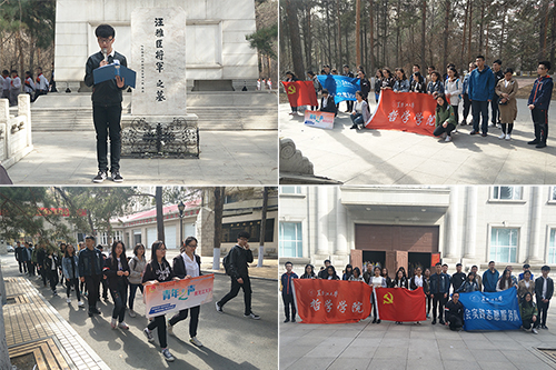 在固定党日4月5日这一天,13时30分,学院党员代表、学生干部代表在学院团委学生副书记、研究生兼职辅导员张博伦的带领下,怀着对烈士无限的敬仰踏入了烈士陵园,来到了纪念碑前。