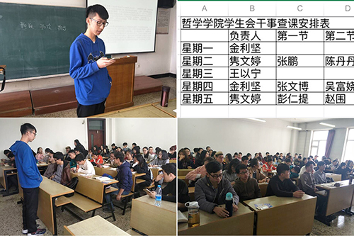 学院坚持学生干部定期查课、辅导员不定期抽查的方式进行课堂考勤,建立学生干部、学生之间的相互监督机制,保证考勤真实性,切实提高课堂出勤率。