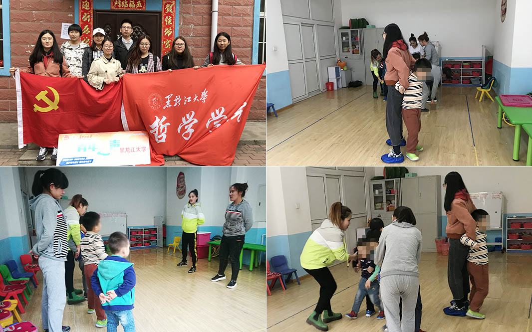 活动伊始,大家首先向幼教园的老师们了解了幼教园的自闭症儿童的基本情况,并认真听老师讲解了帮教工作的有关注意事项。接下来,大家跟随老师来到训练室,问候孩子们,在简要地进行了自我介绍之后,大家和孩子们慢慢熟络起来。随后,大家帮助幼教园老师一起对孩子们进行日常的感统训练,训练的内容包括跳床游戏、左右腿练习,抓球训练等项目,大家耐心地帮助孩子们,希望在自己的帮助下孩子们可以锻炼他们的平衡能力和对肢体的协调能力。在整个帮教过程中,大家发挥出共产党员乐于服务他人、奉献社会的积极向上的精神,耐心地帮助、关爱每一位小朋友。活动最后,大家在不舍中与孩子们告别,本次实践活动圆满结束。