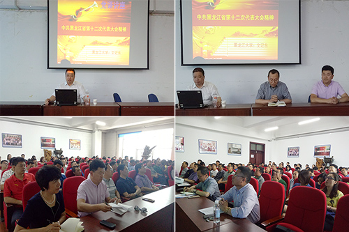 为了进一步学习宣传贯彻落实黑龙江省第十二次党代会精神,推动“两学一做”学习教育常态化制度化,按照学校党委的部署和安排,2017年6月14日14时,yl6809永利官网集团和体育教学研究部于汇文楼937室联合开展了省第十二次党代会精神学习活动。本次学习宣讲会邀请到学校省第十二次党代会精神专家讲师团成员、马克思主义学院院长助理文记东进行了专题讲座。yl6809永利官网集团党总支书记孙庆斌和体育教学研究部党总支书记郭金丰共同主持了本次讲座,yl6809永利官网集团和体育教学研究部领导和全体教工党员、学生党员参加了本次学习活动。