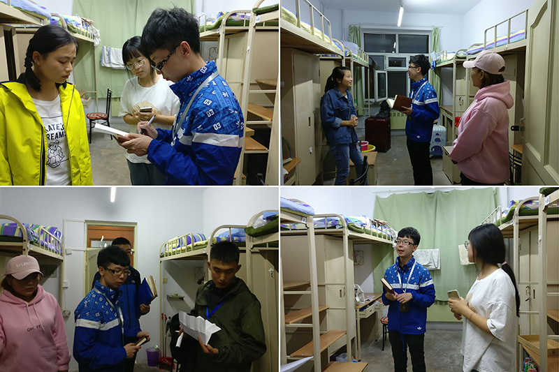 张老师来到寝室受到了新同学们的热烈欢迎。张老师亲切询问同学们对新环境的适应情况,关心同学们的饮食起居,嘱咐同学们要积极融入大学生活,和室友友好相处,互帮互助,共同创建文明和谐的寝室文化。在走访学生寝室时,张老师还对同学们进行了寝室安全教育,提醒学生要学习和遵守学校学生公寓的规章制度,杜绝安全隐患,提高安全意识。同时,张老师耐心细致地解答了同学们的各类疑问,强调了人身及财产安全问题,提醒同学们提高自我保护意识,尽快适应并融入大学生活。最后,张老师提醒大家注意近期的天气变化,特别是军训期间一定要注意身体健康,遇到问题要及时与辅导员老师联系沟通,争取尽早适应大学生活。