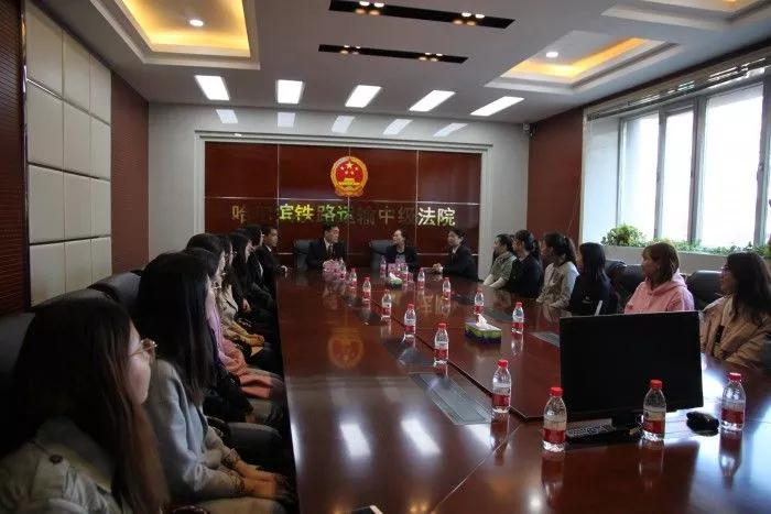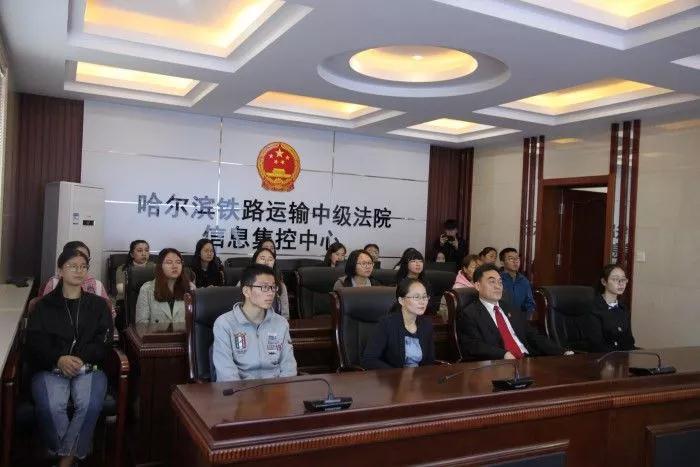 参观过程中,哈尔滨铁路运输中级人民法院党组成员、政治部主任郭云祥同志向同学们简要介绍了法院的主要工作和近年来的改革发展情况。在郭主任的带领下,同学们先后参观了信息集控中心、科技法庭、荣誉室、文化长廊、诉讼服务中心、执行指挥中心和信访工作室,一步步揭开了法院的神秘面纱,使同学们对法庭和法官的工作有了一个更加直观、真实的了解,激发了他们学法用法的兴趣。通过讲解与交流,同学们进一步了解了公民的基本权利和义务,感受到了日新月异的科学技术为案件审理、执行带来的便捷,为公平正义的维护带来的监督与保障,为老百姓的服务带来的便利。