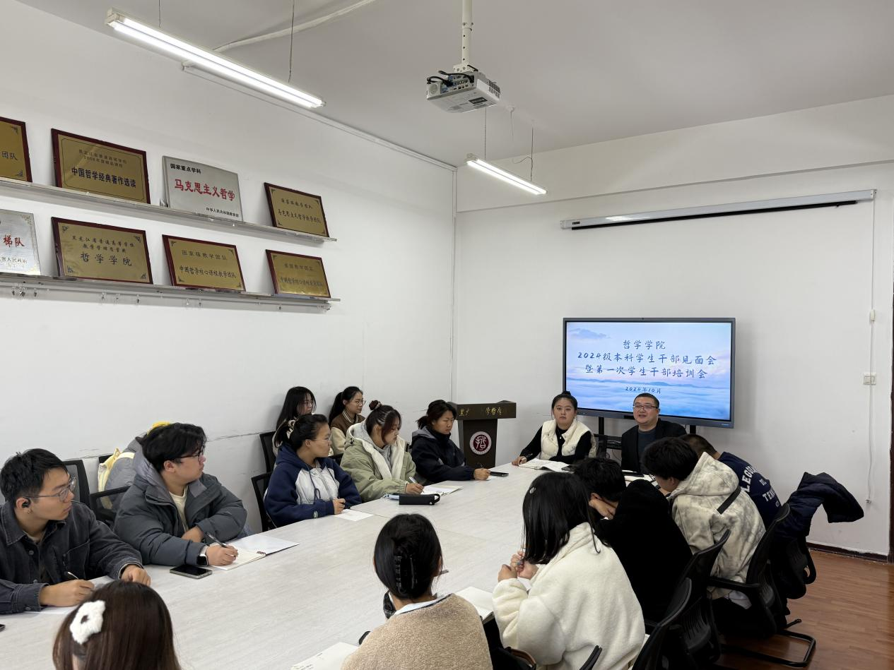 为促进2024级学生干部尽快转变角色,提高学生干部服务意识、团队合作意识和组织管理能力,yl6809永利官网集团于10月24日在汇文楼922会议室召开2024级本科学生干部见面会暨第一次学生干部培训会。yl6809永利官网集团党总支副书记王贵宇、辅导员赵慧雪老师及2024级本科全体学生干部参加会议,会议由辅导员赵慧雪老师主持。