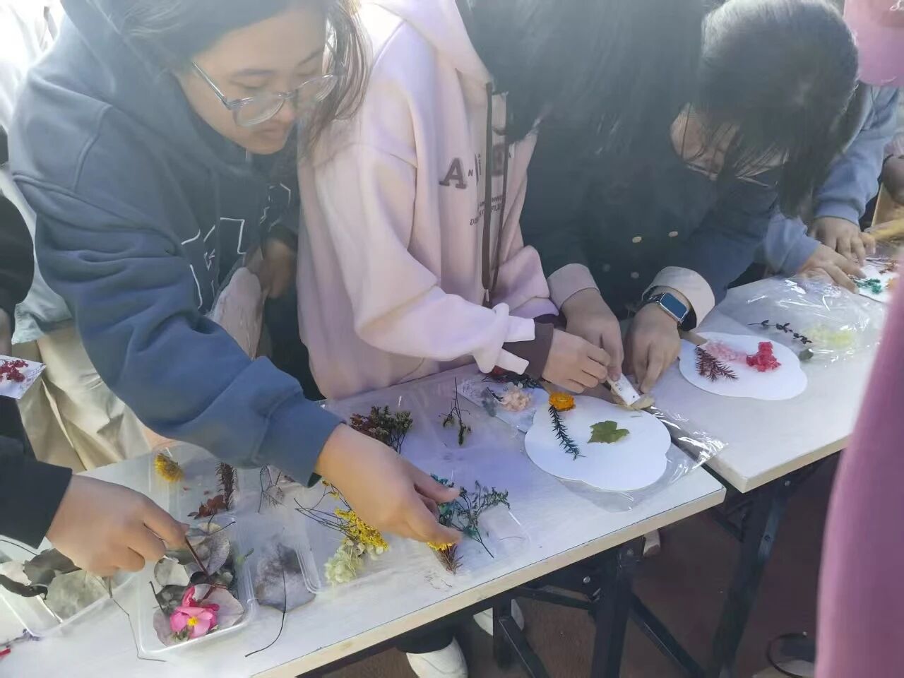 活动现场氛围温馨热烈,同学们在传统团扇上点缀秋色干花,于方寸折纸间展现指尖匠心,在卡纸上涂出属于自己情感的颜色,以缤纷彩绘传递情感温度,让千年雅韵在现代校园中焕发新生,让融融暖意流淌于每一个参与者的心间。