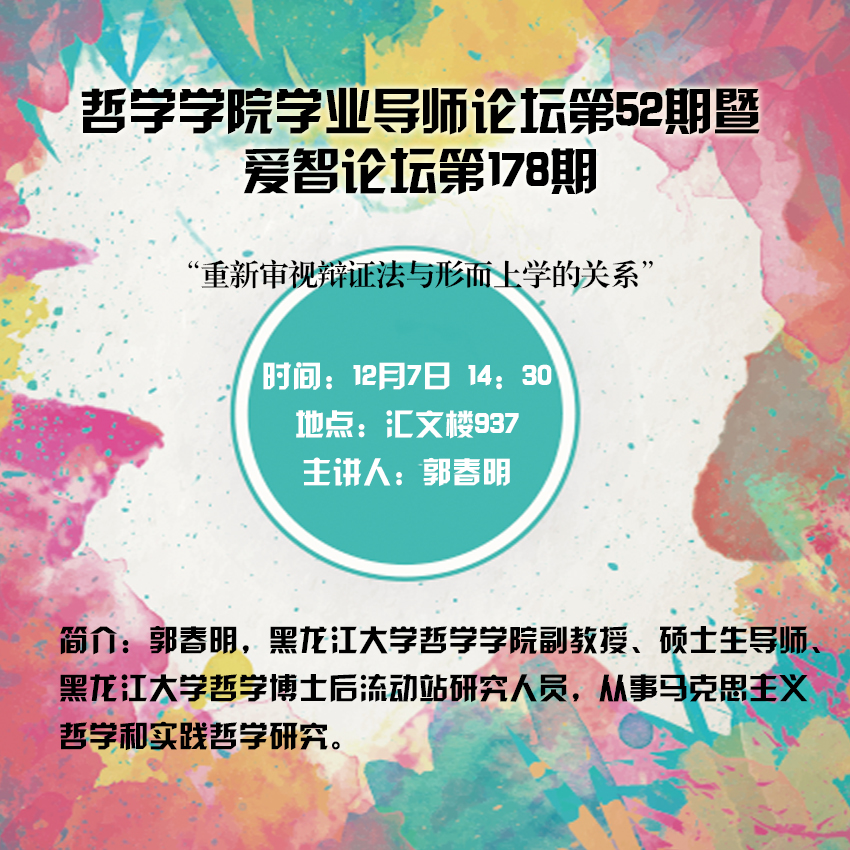 yl6809永利官网集团学业导师论坛第52期暨爱智论坛第178期