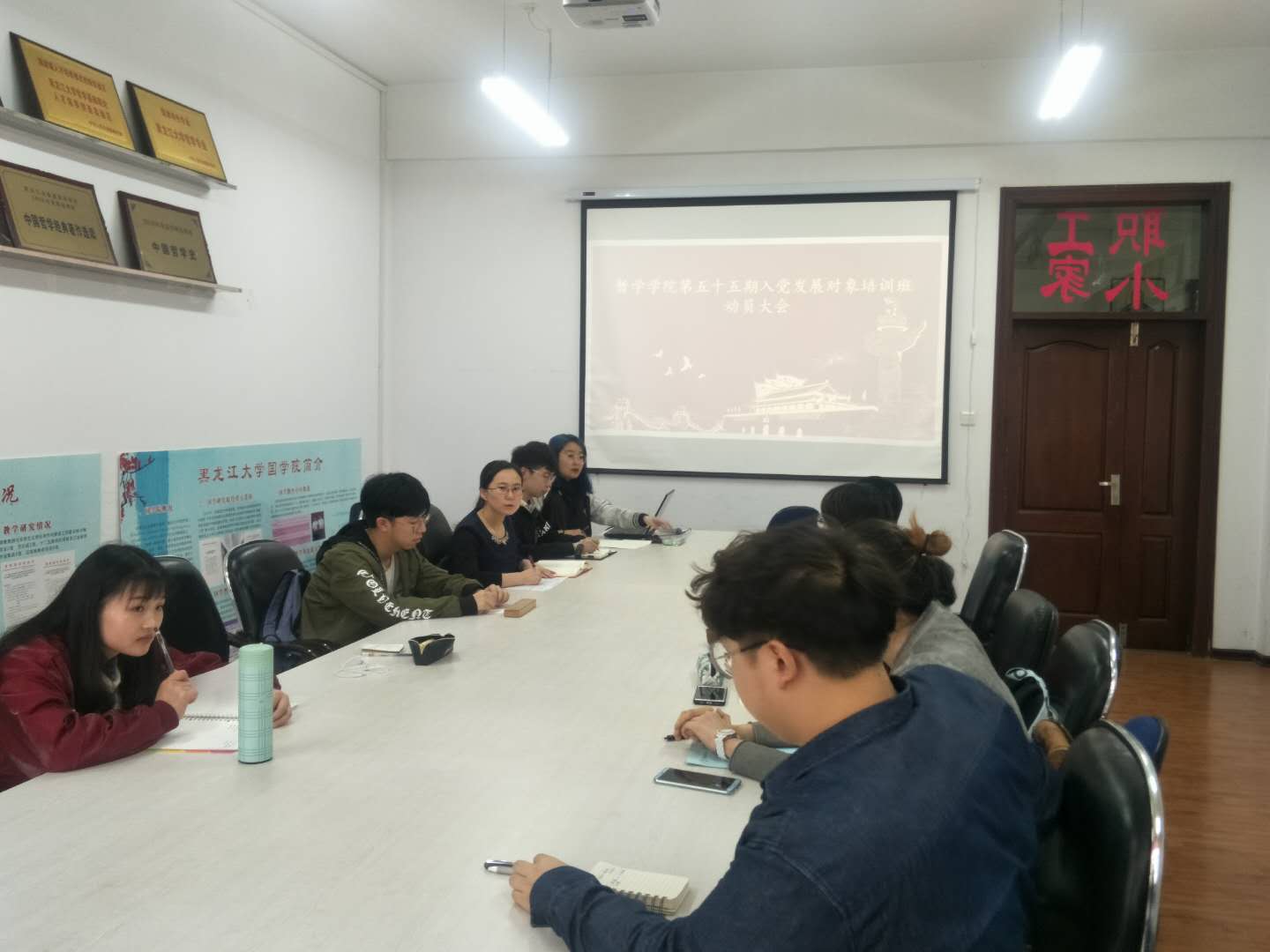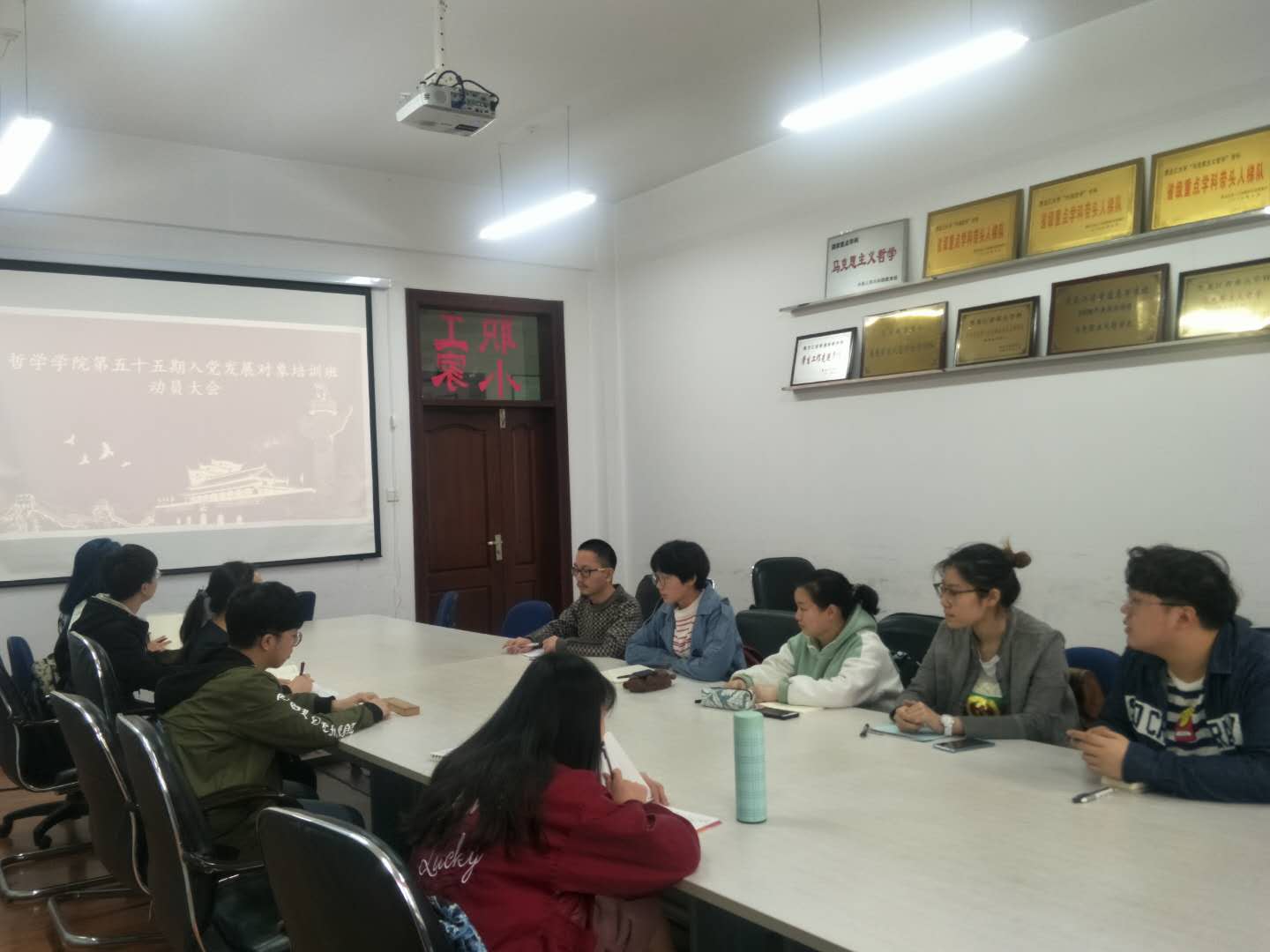 2018年4月20日13时,yl6809永利官网集团于汇文楼922召开了第五十五期入党发展对象培训班动员大会。会议由学院党总支秘书、团委书记黄影老师主持,团委副书记张博伦老师和全体培训班成员参加。