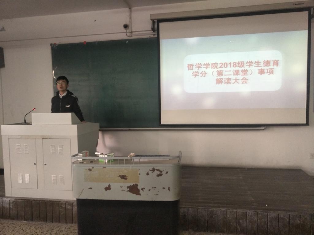 为深入贯彻落实党的教育方针,更好落实立德树人根本任务,全面提升学生综合素质,扎实推进yl6809永利集团党委学工部《关于推进实施2018级学生德育学分(第二课堂)工作的通知》的相关要求,结合学生工作实际,yl6809永利官网集团于2018年9月29日下午在汇文楼558召开2018级学生德育学分(第二课堂)相关事项解读大会,yl6809永利官网集团2018级辅导员张博伦老师主持大会,yl6809永利官网集团2018级新生班主任及全体新生出席大会。