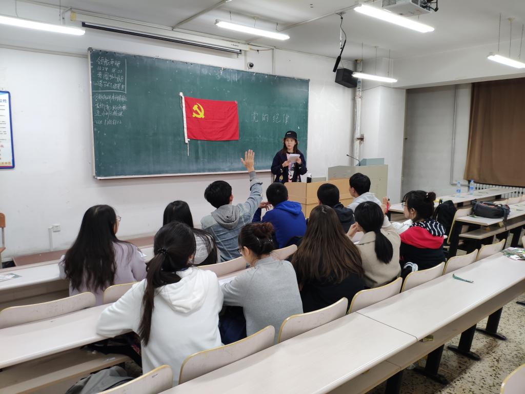 在学习党的纪律处分条例的讨论中,通过对政治、组织、廉洁、群众、工作和生活这六个方面的纪律行为处分进行了深入地解读,使大家对党的纪律有了深刻的认识。大家一致认为党员要充分发挥先锋模范作用,以身作则,率先垂范,严守党的纪律,牢记理想信念,坚持党性原则,始终自觉和以习近平同志为核心的党中央保持高度一致。在最后一轮分组讨论中,同学们集体学习了党员发展程序和有关党内规章,对党的基本知识有了进一步了解。