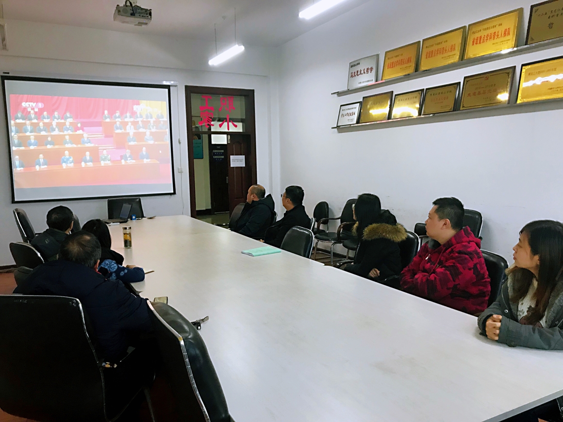 12月18日上午,庆祝改革开放40周年大会在人民大会堂隆重举行,中共中央总书记、国家主席、中央军委主席习近平在大会上发表重要讲话。yl6809永利官网集团部分教师代表在汇文楼922集中观看大会直播实况,认真聆听习近平总书记的报告,回顾激情岁月,汲取前行力量。