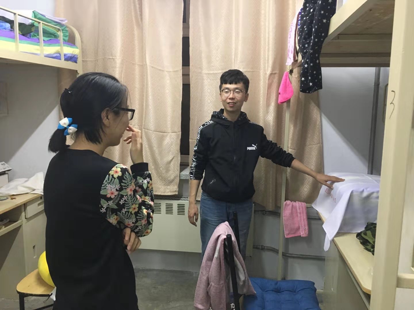 在新生到来之际,为了深入了解2018级新生寝室情况,更加积极地适应他们的大学生活,感受到新环境的温暖,2018年8月29日19时,yl6809永利官网集团新生导员张博伦来到新生寝室走访看望了2018级新同学。