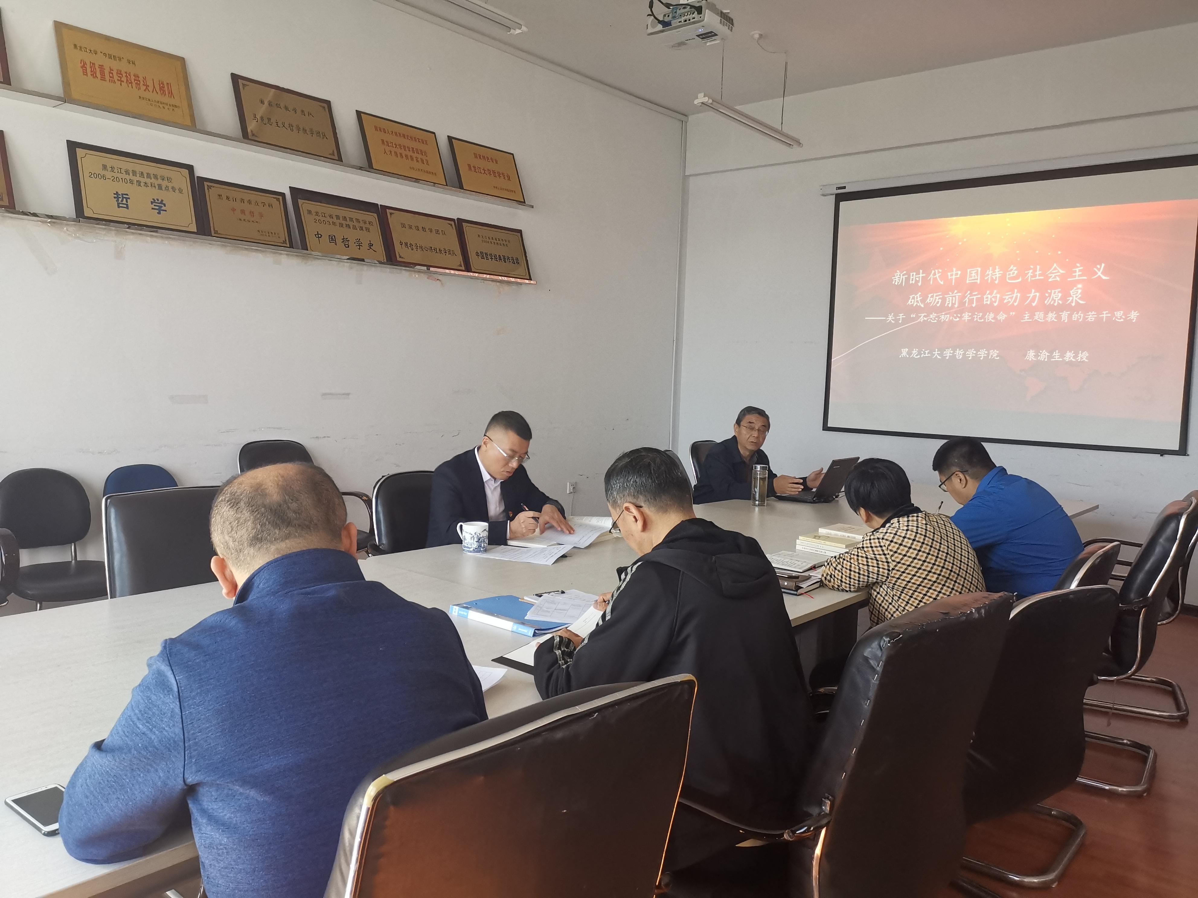 9月24日上午,学院邀请康渝生同志在汇文楼922室作了“新时代中国特色社会主义砥砺前行的动力源泉”学习导读,学院全体处级党员干部参加。报告介绍了“不忘初心、牢记使命”主题教育的缘起、背景、目标和重要意义,结合习近平总书记对主题教育提出的“守初心、担使命、找差距、抓落实”12字总体要求和“理论学习有收获、思想政治受洗礼、干事创业有担当、为人民解难题、清正廉洁做表率”5个具体目标,强调了党员干部应当如何锤炼忠诚干净担当的政治品格,要增强“四个意识”、坚定“四个自信”、做到“两个维护”,自觉在思想上政治上行动上同党中央保持高度一致,始终忠诚于党、忠诚于人民、忠诚于马克思主义。