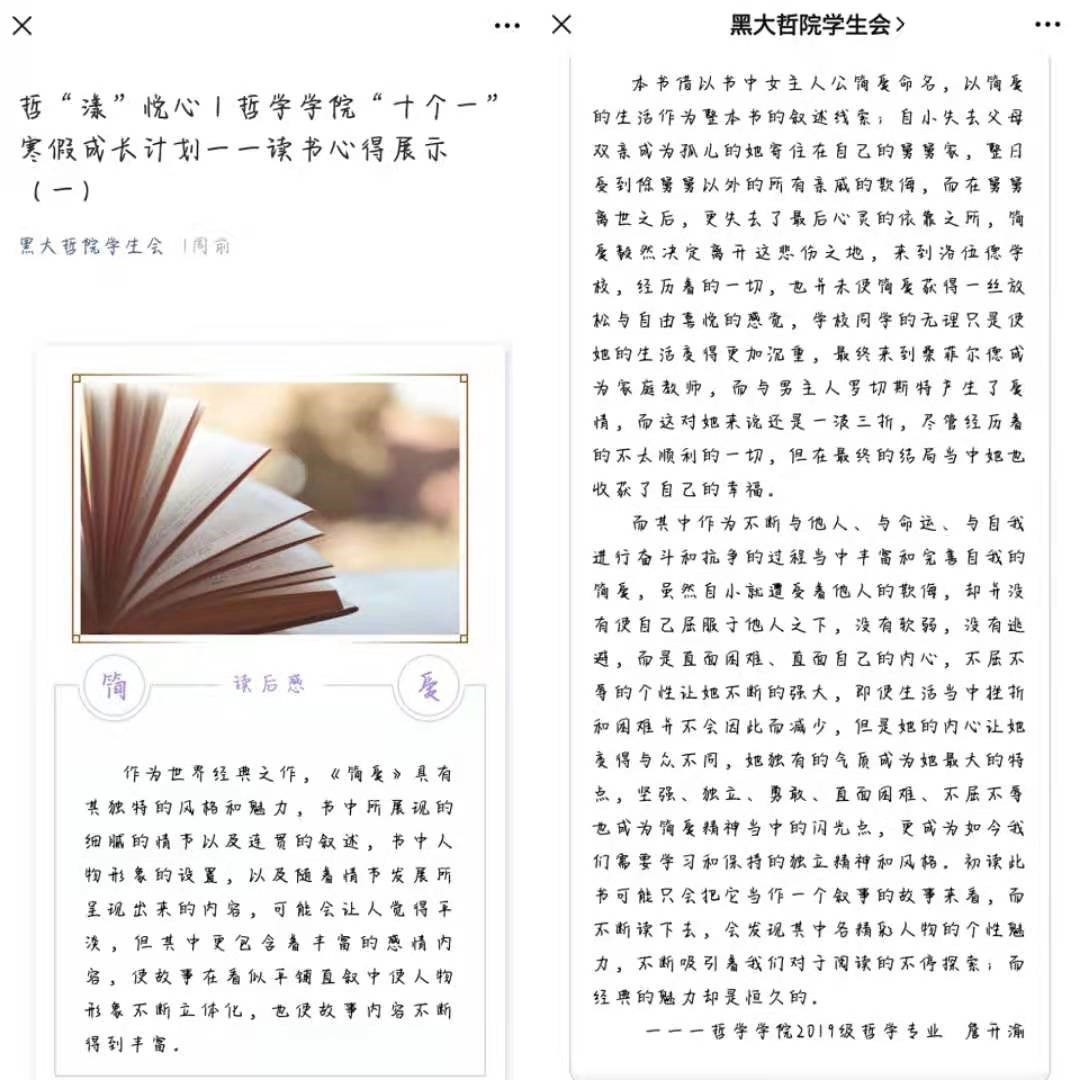 yl6809永利官网集团主管学生工作领导和辅导员高度重视开展“十个一”大学生寒假成长计划主题系列活动工作,认真布置落实,共开展相关主题系列活动20个,学院学生积极参与,利用网络新媒体平台,依托学院学生工作公众号,积极开展“十个一”大学生寒假成长计划主题系列活动教育及成果宣传展示,共累计发布推送43期,总文字量高达16000余字,图片展示量数十张,推送频率达到3-4天/周期。