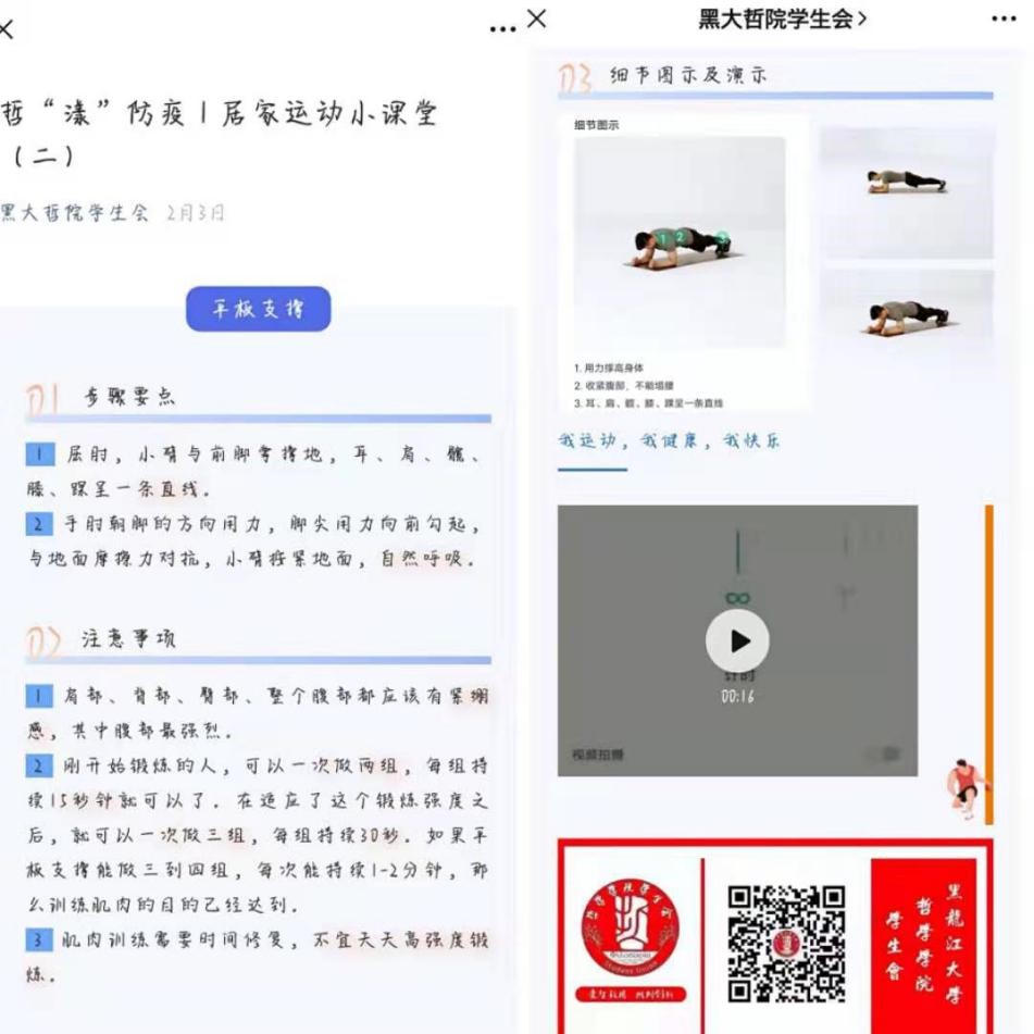 按照“打卡一期居家锻炼”的要求,yl6809永利官网集团开展“居家运动小课堂”活动,开辟了“疫情防控小贴士”、“居家心理小贴士、“生活小贴士”等生活温馨提醒专栏,及时提醒学生关注自己身心健康,锻炼强壮的身体与积极向上的心态。鼓励学生利用闲暇时间开展21天居家锻炼打卡,认识到身体健康的重要意义,根据自身实际情况,合理制定运动方案,养成经常运动、规律作息的生活习惯,培养自律意识,锻炼身体素质,收获充实的生活和良好的状态,以积极向上的精神面貌和健康体质享受美好的假期生活。