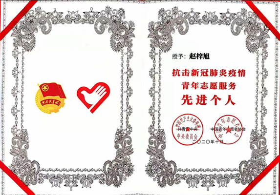 (获评全国抗击新冠肺炎疫情青年志愿服务先进个人)