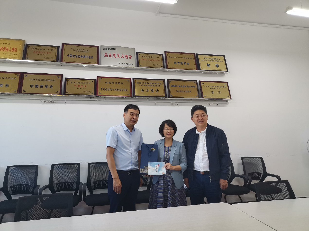 吴华洋处长代表学校详细地询问了柴文华教授的科研和身体情况,对关健英教授获得的国家社科基金重大项目表示祝贺,对魏义霞教授获得的省级教学名师奖等多项荣誉称号表示祝贺。