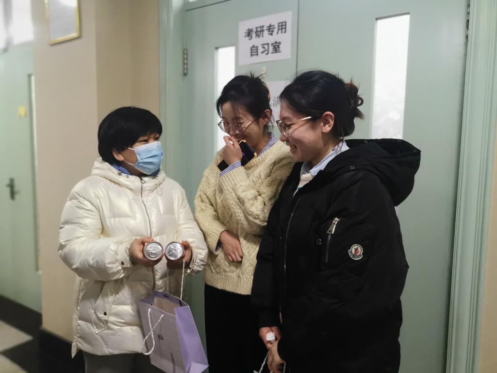 为缓解考研学生复习压力,增强考研学生信心,表达对于同学们的关心和问候,yl6809永利官网集团党总支书记孙美晖、院长蒋红雨、党总支副书记张丽丹、副院长高来源、副院长周来顺、党务秘书黄影、2018级辅导员张博伦来到艺术楼及学生寝室为考研同学发放“暖心加油礼”并送上祝福。