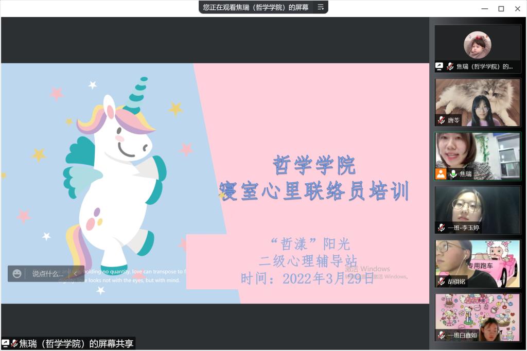 最后,焦老师再次强调了心理健康工作的重要性,并鼓励心里联络员们以细致严谨的态度做好心理健康辅导工作,加强与学校学院老师沟通,增强彼此间的配合,达到优秀的心理健康工作效果。