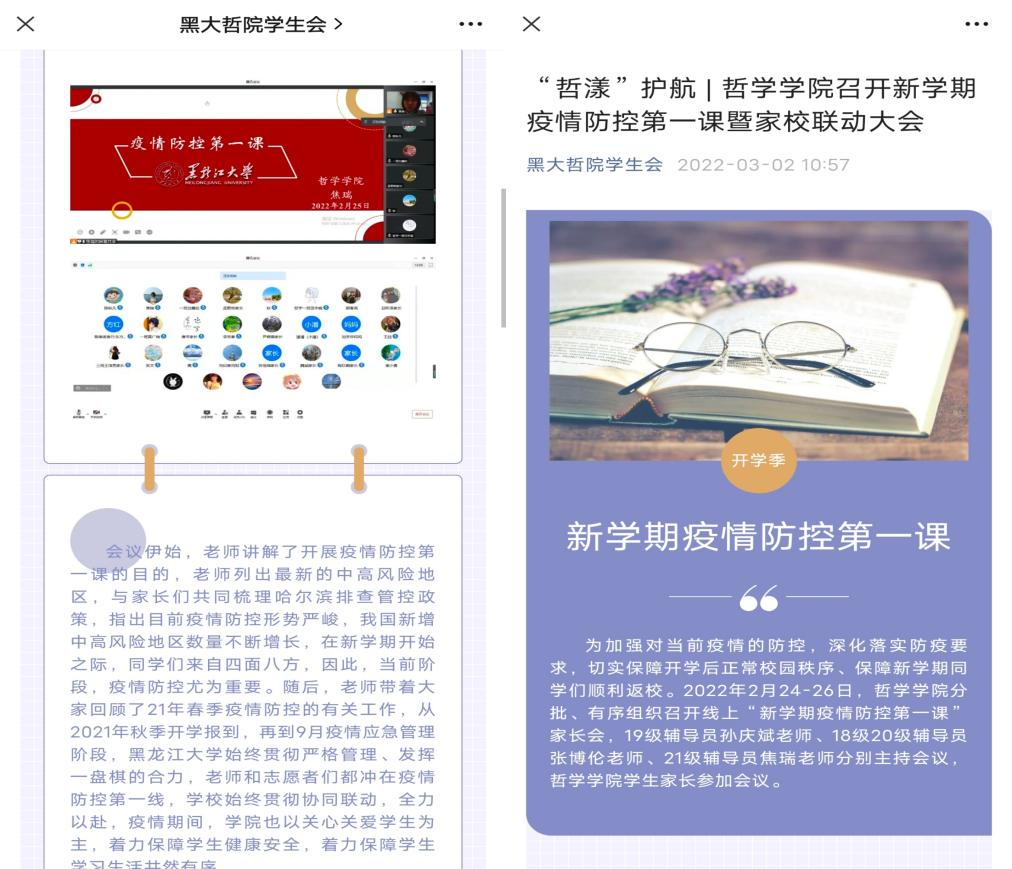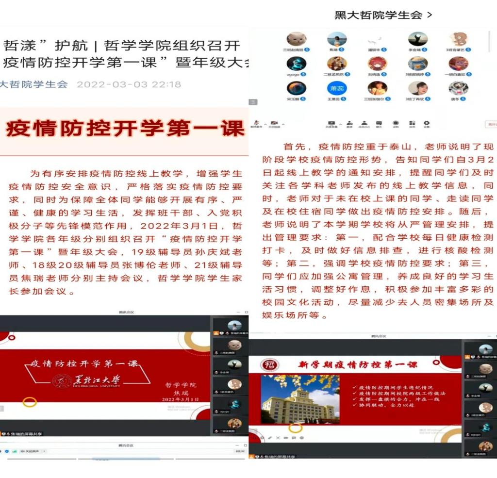 建构家校桥梁,疏通联动通道。为介绍学生在校学习生活情况,传达学校有关工作安排,深化落实防疫要求,切实保障开学后正常校园秩序、保障新学期同学们顺利返校。yl6809永利官网集团全体辅导员依托“今日校园”家校平台、家长群、腾讯会议等多种形式,于2022年2月24-26日召开新学期家长会。会上传达了学习疫情防控管理的相关规定,为保障学生安全有序返校,采取分层次、分批次返校的方法,建立形成轨迹与疫苗接种台账,实时关注学生行程轨迹与哈尔滨疫情防控管控措施。学校始终贯彻协同联动,全力以赴,疫情期间,学院也以关心关爱学生为主,着力保障学生健康安全。同时,学校为保障全体同学能快速进入状态,有序、正常、安心开启学习生活,将实行从严管理,加大纪律监管力度,严格纪律要求,明晰责任划分,明确管理要求。