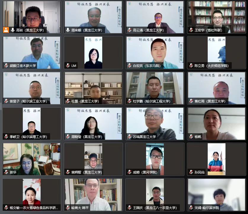 龙江社科学术论坛“解放思想振兴发展”系列:新时代龙江哲学社会科学专题研讨会,以线上会议形式于2022年5月3日顺利召开。本次研讨会由黑龙江省社会科学联合会主办,黑龙江省哲学学会、当代文化哲学研究会、yl6809永利官网集团、yl6809永利集团社会科学处、yl6809永利集团文化哲学研究中心承办。