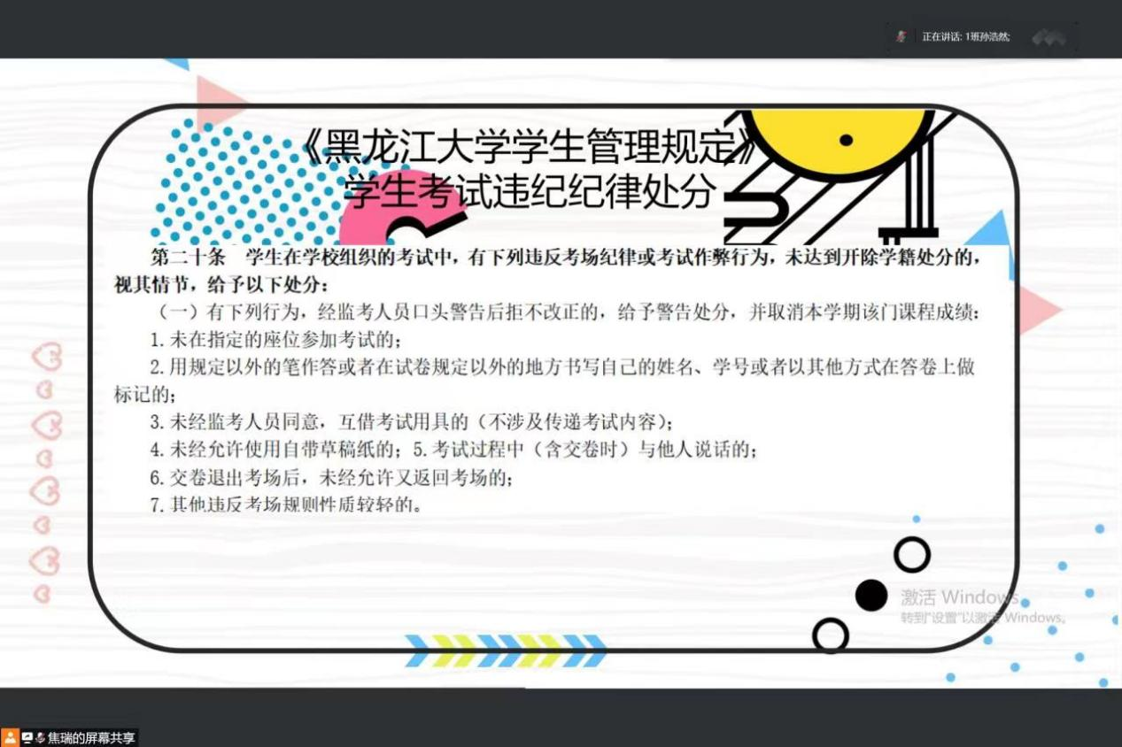 大三年级会议上,孙庆斌老师首先明确了诚信考试的重要性,要求同学们明确学习目的,在考试中遵守考试纪律。同时,孙庆斌老师希望大家能够合理地制定复习计划,积极备考,通过全面、有效、精准的复习,及时查缺补漏,进一步理解所学知识,积极备考,争取在考试中取得优异成绩。再次,孙庆斌老师还提到学生身心健康问题。期末复习阶段,有许多学生熬夜复习、写论文,会损害身体健康。孙庆斌老师指出,学生应当合理规划时间、劳逸结合,提高学习效率,同时注重饮食,忌重油重辣,保持身体健康,这样才能更安心更专注地投入到学习中。此外,更要减少焦虑,以放松的心态迎接考试。最后,假期即将到来,孙庆斌老师强调了假期安全问题以及相关注意事项,强调要做好疫情防护工作,保护好自己,也保护好他人。大四年级会议上,张老师希望大家在离开学校后,能继续以诚信的良好品质做学问、做工作,秉承学习诚信的良好品德,展现出黑大学子良好的道德修养。