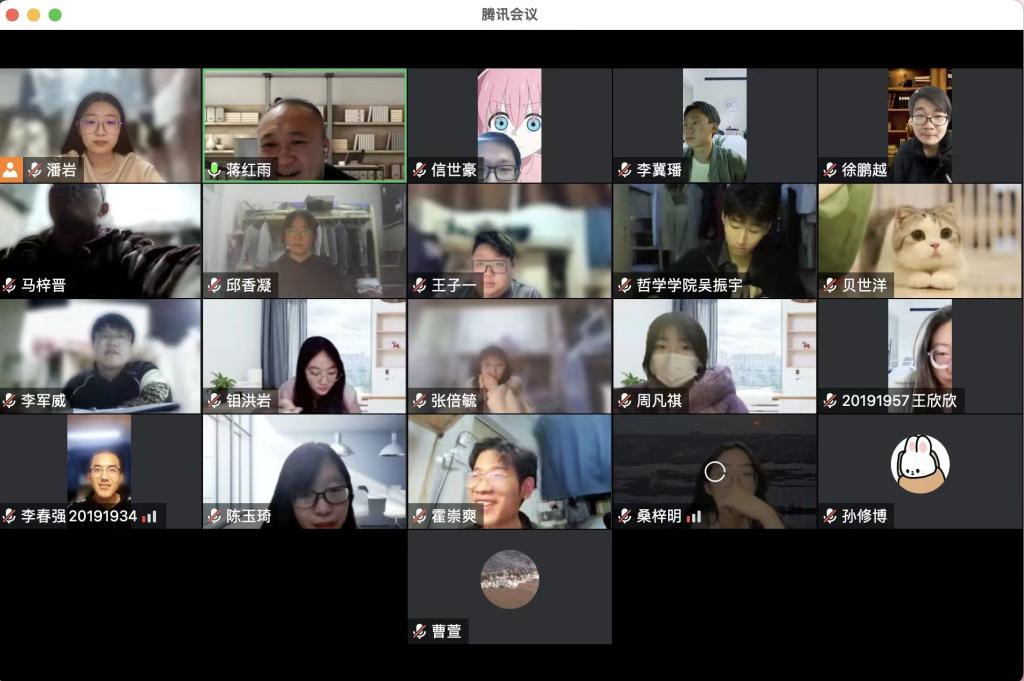 蒋红雨老师在同2019级1班同学谈话时与同学们展开了充分的交流和沟通,仔细地询问了同学们近期隔离的生活情况和状态,对同学们的各种提问都进行了详细的回答。特别向同学们分享了调节心理状态的各种相关方法,强调在特殊时期同学们要学会抗压,稳定心态,学院及学校也会尽全力给同学们提供最好的帮助,叮嘱同学们严格遵守疫情防控的相关要求,勤洗手,戴口罩,常通风,保持良好的宿舍卫生,养成良好的个人卫生习惯,并积极鼓励同学们有问题要多与自己沟通。同学们也畅言自己现阶段的生活状态,表达了对学院体贴入微的帮助与保护的感谢。