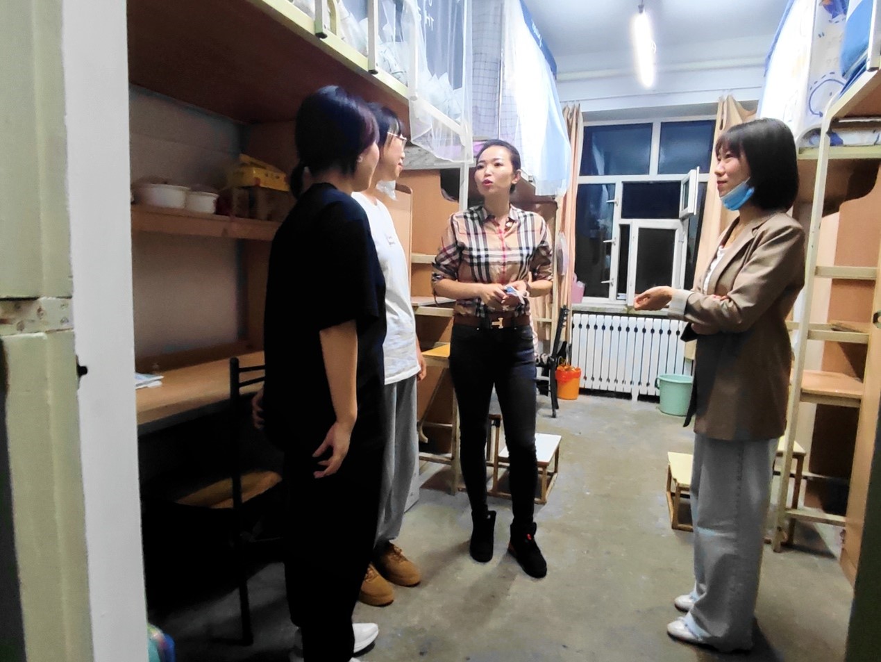 为了深入了解新学期开学以来学院学生的思想、学习、生活动态,帮助学生尽快转变假期生活节奏,适应新学期生活,解决实际难题,yl6809永利官网集团党总支副书记张丽丹老师和全体辅导员老师一同走访各年级学生寝室,对同学们的学习、生活以及思想方面进行了亲切交流。张丽丹老师和辅导员老师们认真倾听了学生们对于新学期的展望和规划以及开学以来遇到的困难,详细记录了同学们的开学难题并提出了相应的解决方法。走访最后,张丽丹书记和辅导员老师们向同学们宣传了国家贷款资助政策及学费代偿相关政策,提醒同学们如果家庭困难可以提出申请,在毕业季要诚信还款,防止对自己的个人征信产生不良影响。此外,书记与老师们还嘱咐同学们要严格遵守学校疫情防控相关规定,做好个人防护,在保障自身健康安全同时,尽快调整状态,制定新学期规划,以饱满热情投入到新学期学习生活当中。