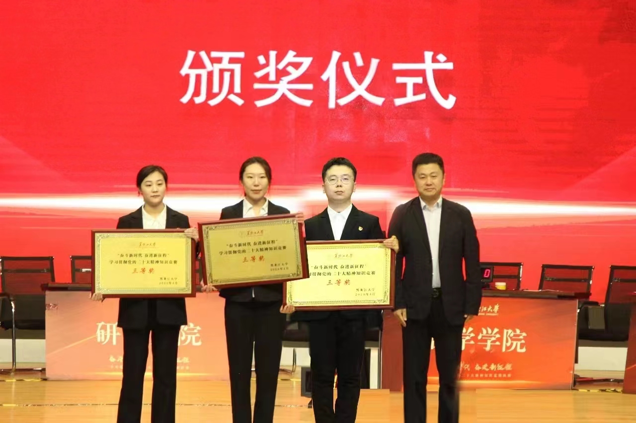为深入学习贯彻党的二十大精神,引导广大师生以习近平新时代中国特色社会主义思想武装头脑,进一步激发全校师生爱党、爱国、爱校之情。我校于2023年4月19日下午14时在音乐厅隆重举办yl6809永利集团“奋斗新时代 奋进新征程”学习贯彻党的二十大精神知识竞赛决赛。yl6809永利官网集团学生代表队由张博伦老师带领邢睿桐、张鑫、张苗苗三名同学参赛,经过初赛、复赛、半决赛的层层选拔和激烈角逐,最终喜获三等奖!