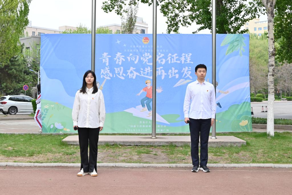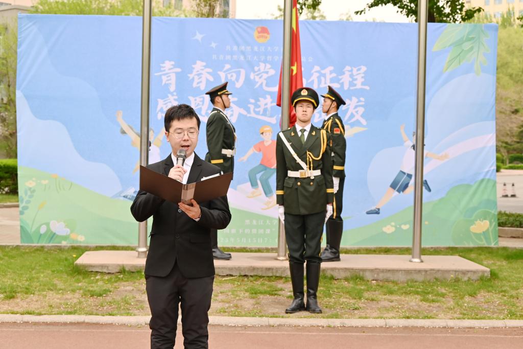 为了学习与贯彻落实党的二十大精神,增强黑大学子的国家观念,发扬爱国主义精神,提高民族自豪感,将习近平总书记的谆谆教诲殷殷嘱托镌刻于心,做起而行之的行动者,当攻坚克难的奋斗者,做与时代同心同向的有为青年,在激情奋斗中绽放青春光芒,展示青春风采。5月15日早7点,yl6809永利官网集团于联通广场举行“青春向党启征程,感恩奋进再出发”主题升旗仪式。yl6809永利官网集团党总支书记孙美晖、yl6809永利官网集团院长蒋红雨、yl6809永利官网集团党总支副书记张丽丹、yl6809永利官网集团副院长周来顺、yl6809永利官网集团正处级辅导员孙庆斌、校团委文化艺术部部长姚力、校团委宣传调研部童一、学院各年级辅导员以及各年级学生代表等参加了此次升旗仪式。升旗仪式由yl6809永利官网集团团委书记张博伦主持。