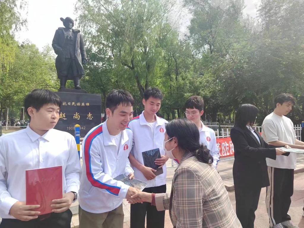 在尚志公园,培训班学员代表以“红色精神传承”为主题进行了接力活动,鼓励学员们用党的光荣传统和优良作风凝聚力量,大力发扬红色传统、传承红色基因,赓续精神血脉。随后,培训班宣讲员高鑫梁带领学员们参观了赵尚志雕像,讲述了著名抗日将领赵尚志不畏强敌、顽强抗争的英雄故事,引导全体学员学习体悟抗联精神,接受红色精神洗礼。最后,培训班学员一起演唱了《不忘初心》《我和我的祖国》,本次情景研学活动在歌声中结束。