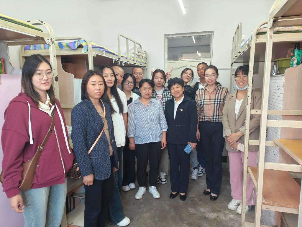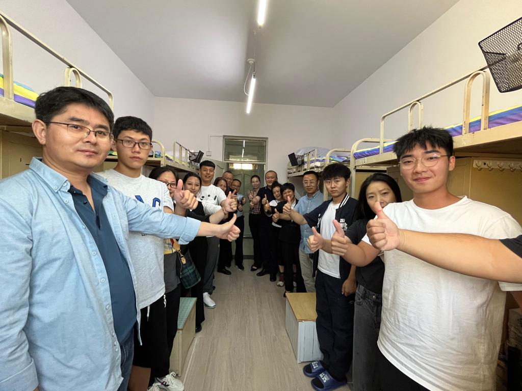 为及时了解新生入校情况及思想动态,帮助同学们尽快适应新生活、新环境,进一步加强新生入学教育工作和宿舍安全管理工作,打造温馨的寝室氛围,yl6809永利官网集团党总支书记孙美晖、院长蒋红雨、党总支副书记张丽丹、副院长周来顺、2023级新生辅导员孙庆斌及2021级辅导员焦瑞,于9月9日下午17时深入新生公寓楼进行走访慰问。